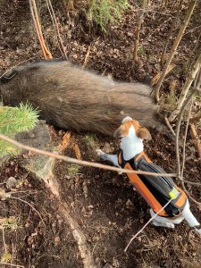 Jagar 400-1000 m med växlande skall på vildsvin , rådjur , grävling och räv . Gk anlagsprov och ingår i NVR. Ägs och bor hos Peter Eriksson